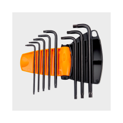 • Juego de llaves acodadas pavonadas TORX® y TORX® inviolables, serie larga, 8 piezas.