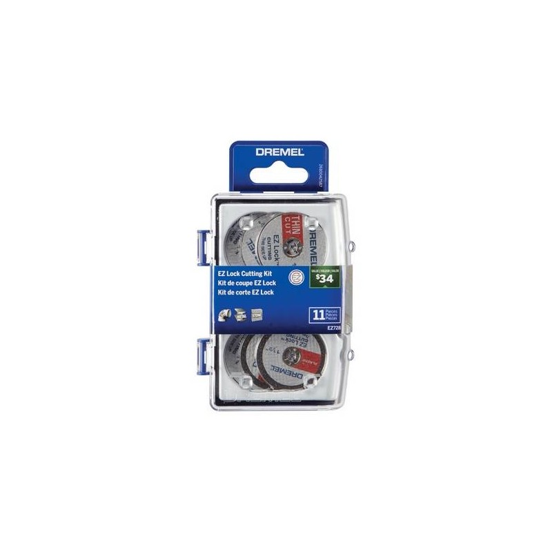 Obtenga más valor con el kit de corte EZ728-02 EZ Lock de Dremel. Este conjunto de accesorios de 11 piezas EZ Lock está especialmente diseñado para realizar diferentes aplicaciones de corte. La tecnología EZ Lock permite cambios rápidos de accesorios sin la necesidad de un tornillo o una llave. El kit de accesorios Dremel brinda el almacenamiento organizado de los accesorios populares de Dremel en un espacio compacto y pequeño. También ofrece un estuche de almacenamiento reutilizable con tapa transparente y bandeja extraíble para una fácil organización de las brocas incluidas. Incluye ruedas de corte delgado EZ Lock, ruedas de corte de metal EZ Lock, ruedas de corte de plástico EZ Lock y un mandril EZ Lock. No está diseñado para usarse con las herramientas múltiples de Dremel, solo la versión oscilante. Dremel EZ728-02 11 PC EZ Lock Accesorio de corte Micro Kit: