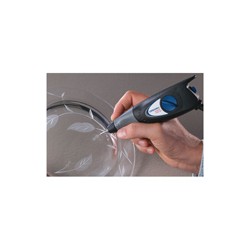 Herramienta para grabar con control variable de la profundidad en una amplia gama de materiales, como por ejemplo metal, cristal, madera, plástico, cerámica, etc. Incluye una plantilla de letras y números para grabar de forma sencilla.