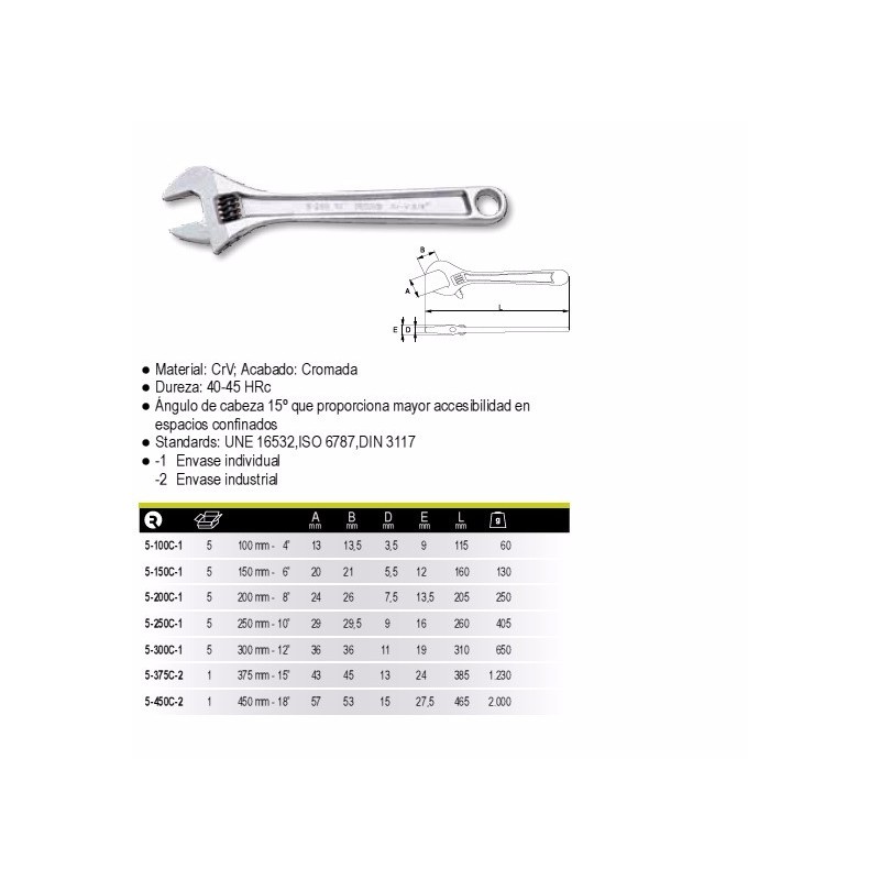 • Material: CrV; Acabado: Cromada.