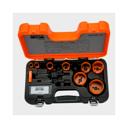 Juego de Sierras copa Sandflex bi-metal en maletín, compuesto por los tamaños más usuales empleados en la industria de ingeniería, sanitarias e instalaciones eléctricas.